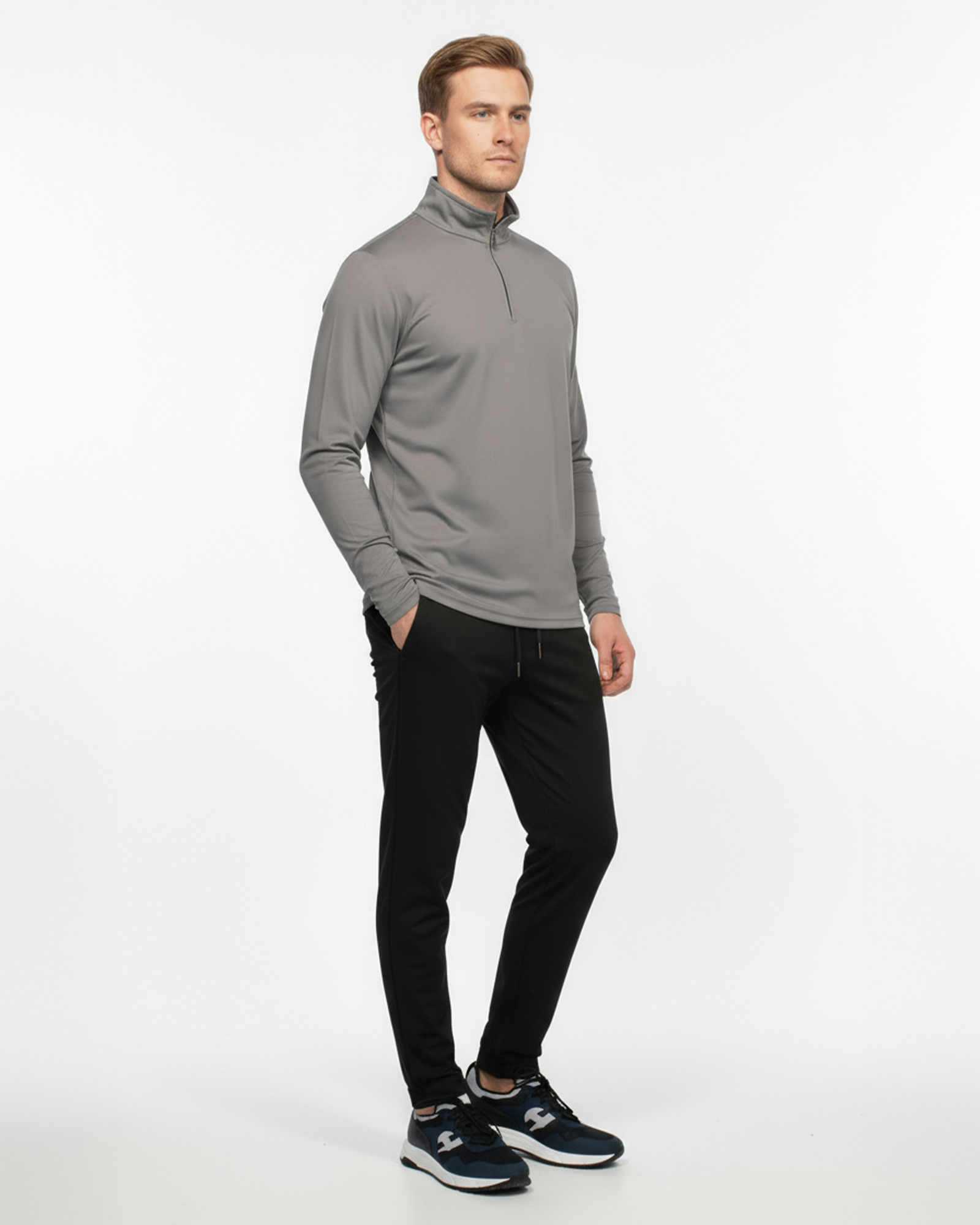 Elevated comfort meets refined style. Our Luxe Quarter Zip is crafted for versatility, featuring premium fabric and detailed stitching on the collar and sleeves for a sharp, structured look. The sleek quarter zip adds a modern edge, making it perfect for both on and off-duty wear.