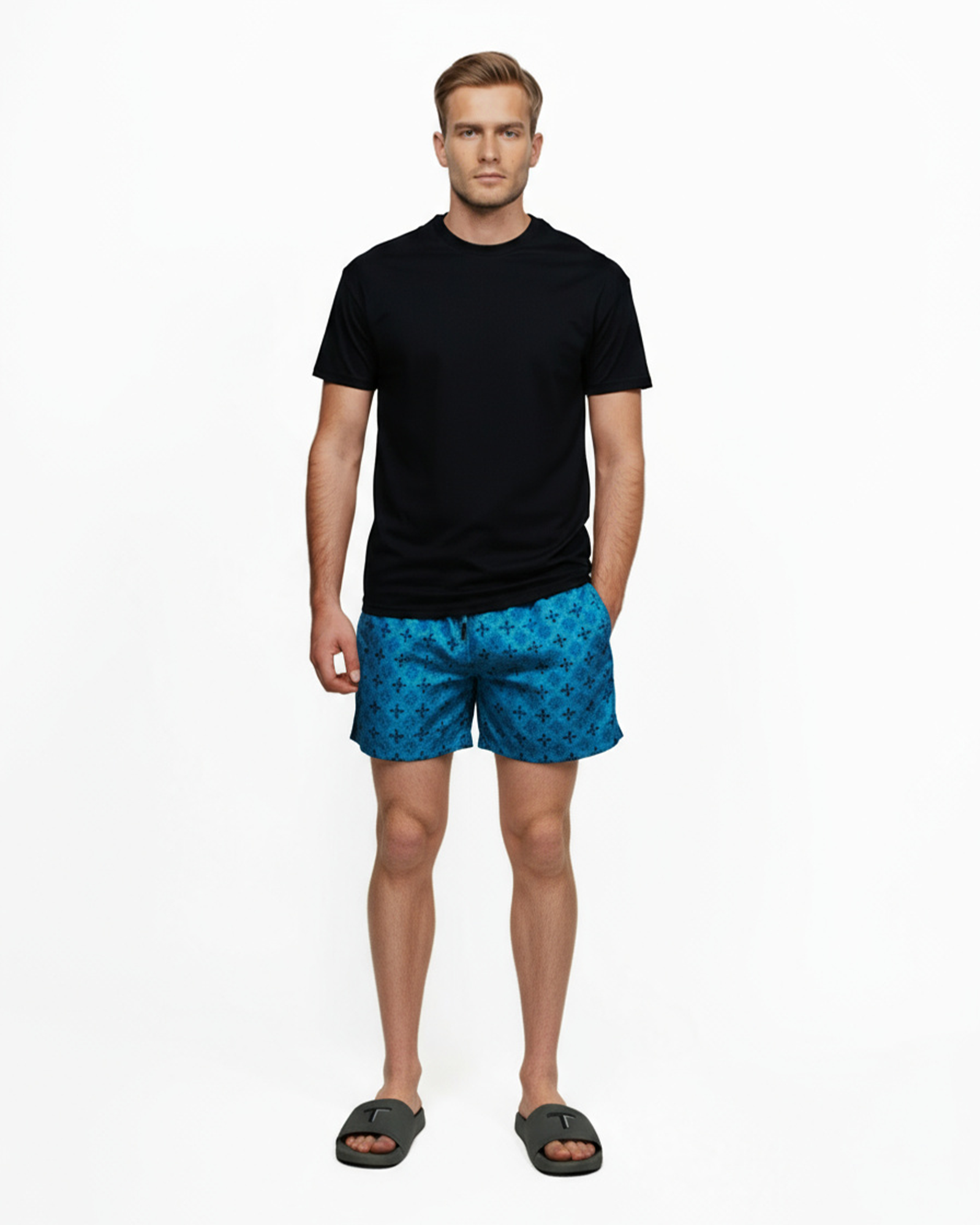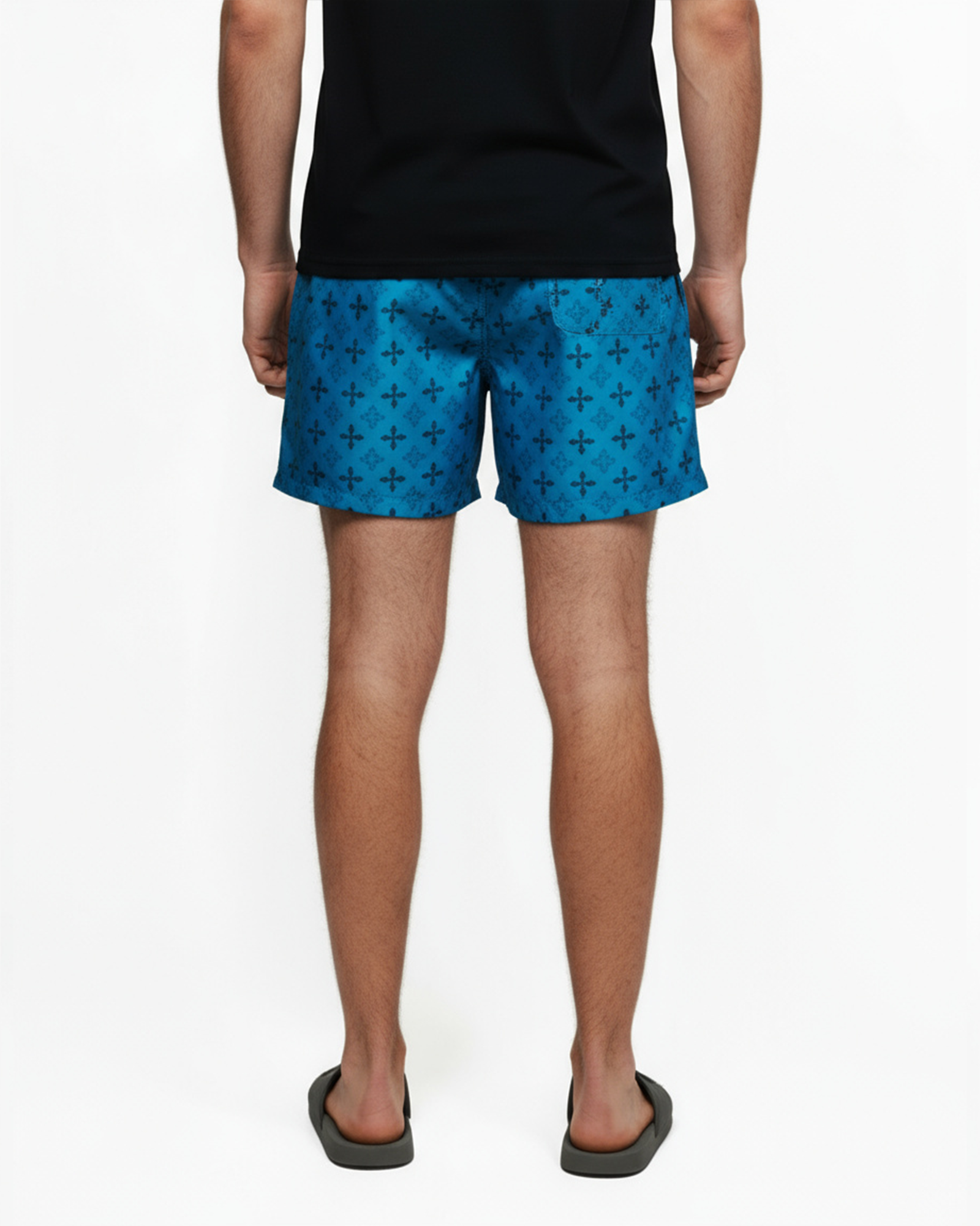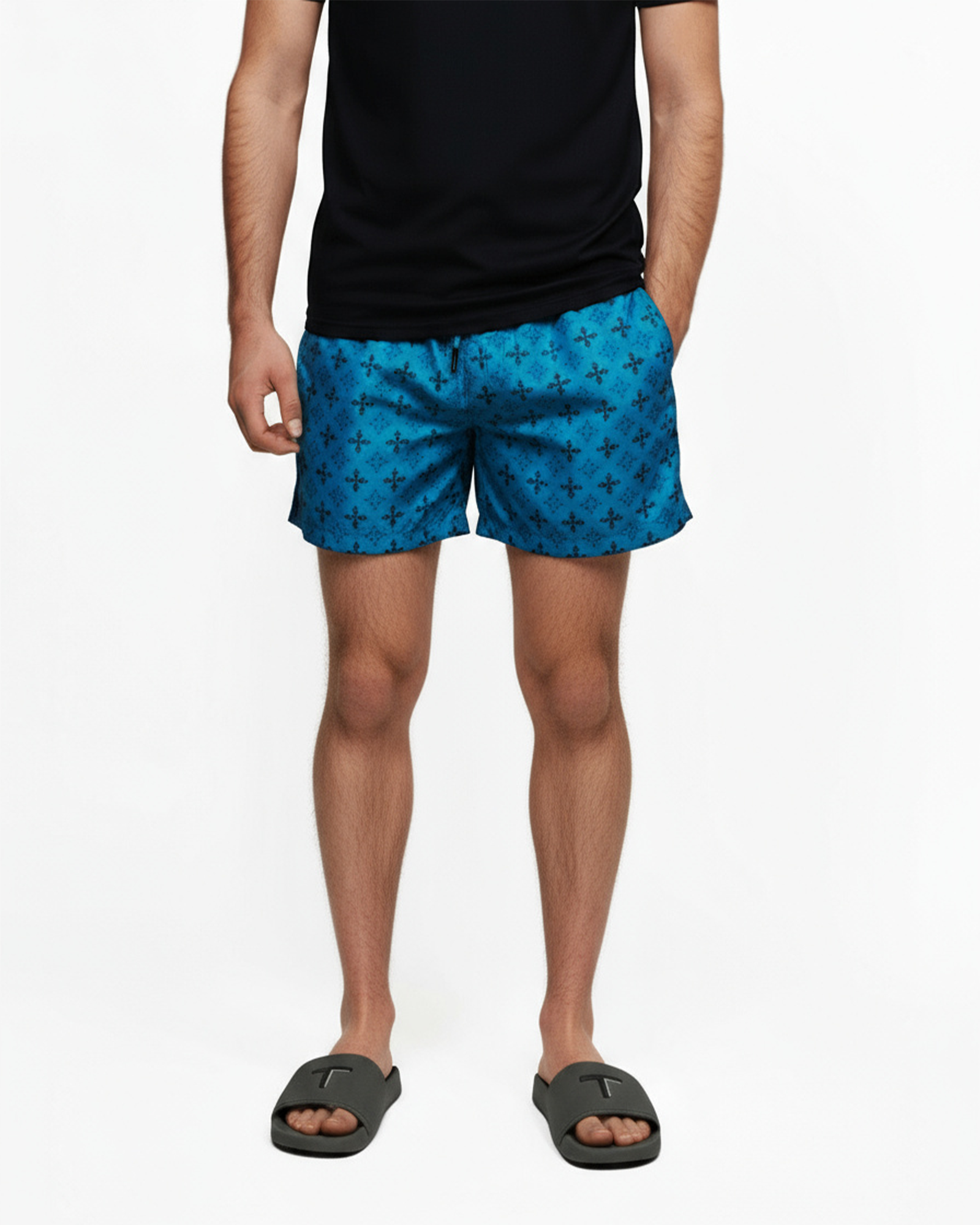 Sleek, modern, and effortlessly stylish—the Men's Tribal Society Blue Sun are designed to elevate your summer wardrobe. Featuring a bold square pattern in timeless black tones, these shorts add a sophisticated edge to your beach or poolside look.